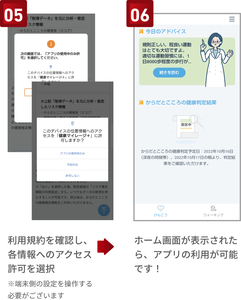 からだとこころの健康測定機能を利用するためには、健康マイレージプラスアプリのインストールが必要です。